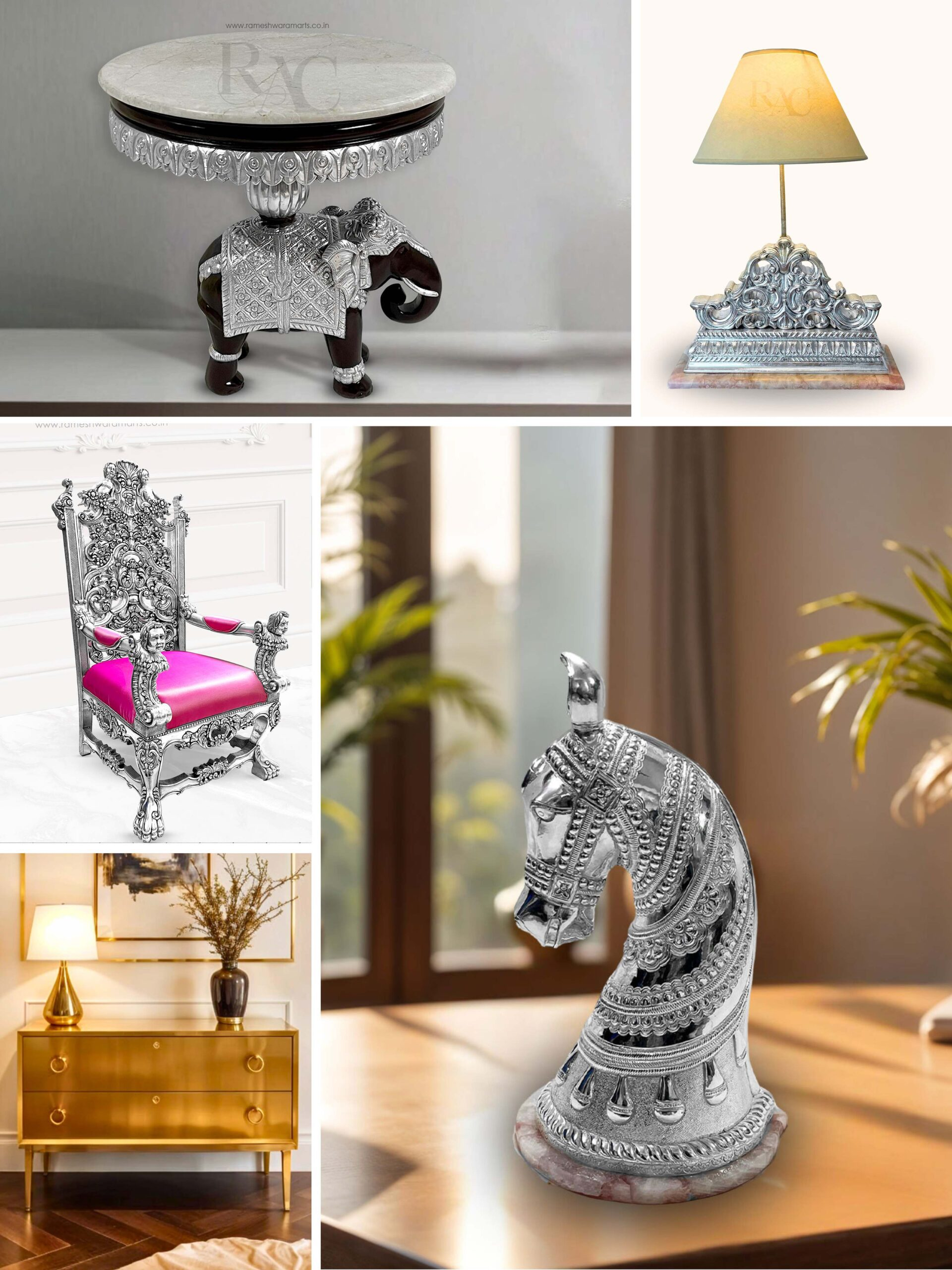 The visionary founder, Gautam Taldar, has imbued Rameshwaram Arts & Crafts with a profound passion for innovation and design, thereby establishing it as the preeminent purveyor of opulent silver and gold furniture and accessories.